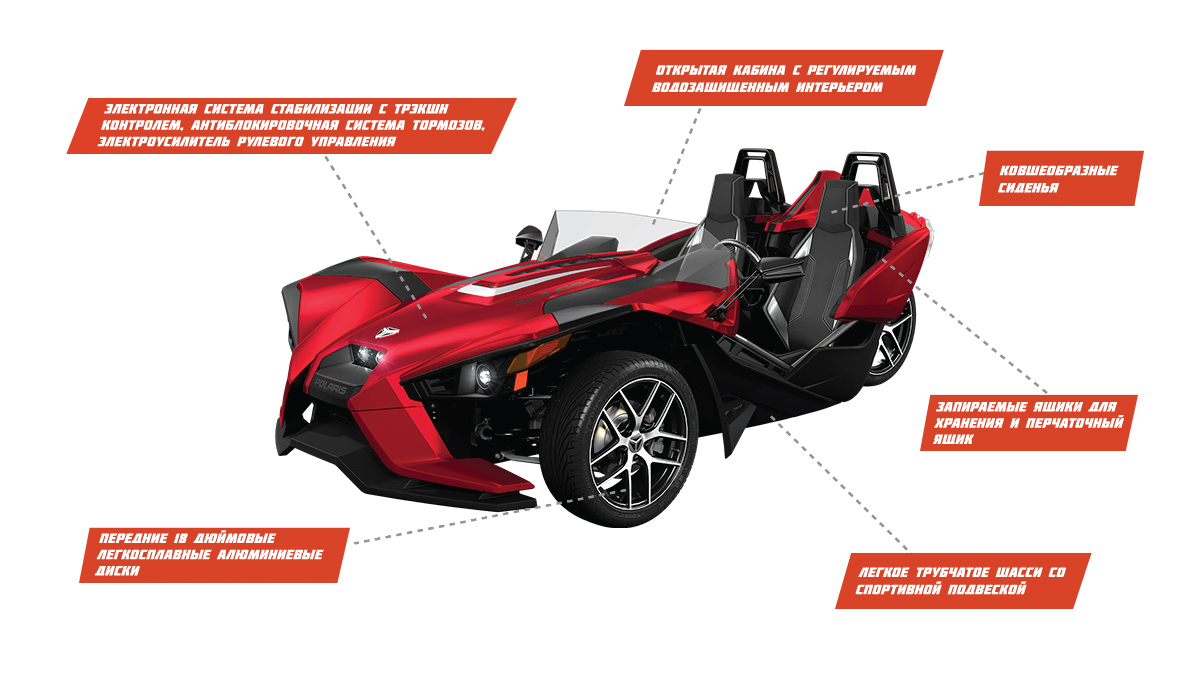 Легкая конструкция Slingshot и 173 л.с. обеспечивает впечатляющее соотношение мощности к весу.